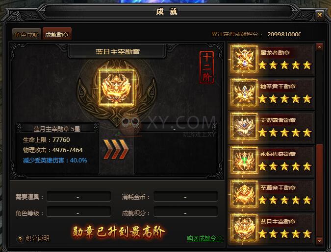 蓝月传奇的成就勋章是战力的重要组成部分之一,玩家可以通过提升勋章级别来提高自己的战斗力,那么成就勋章要怎样才能升级呢?下面就一起跟随XY网小编去看一看吧!