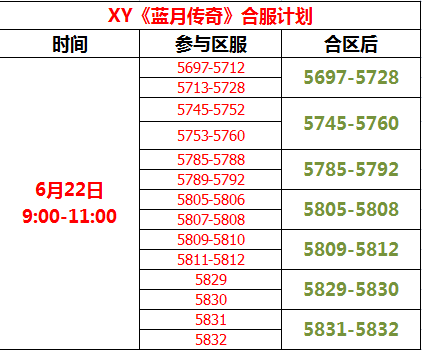 XY《蓝月传奇》6月22日合区公告