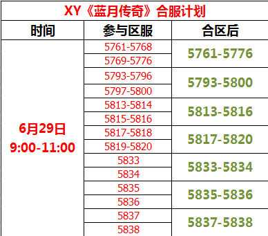 XY《蓝月传奇》6月29日合区公告