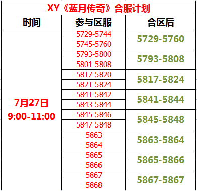 XY《蓝月传奇》7月27日合区公告