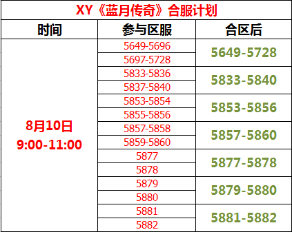 XY《蓝月传奇》8月10日合区公告
