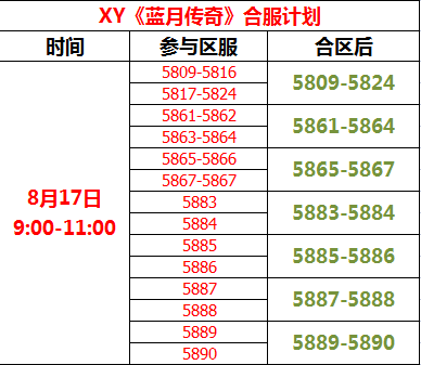 为了活跃游戏气氛,满足玩家需求,亲爱的玩家让广大玩家可以延续更激烈的战斗,XY《蓝月传奇》将于2021年8月17日对以下区服进行合服操作,合服期间玩家不能登录游戏,请各位玩家知晓并相互转告,感谢大家的支持!服务器开放时间会根据维护操作完成时间提前或者延迟开启,不便之处敬请体谅.