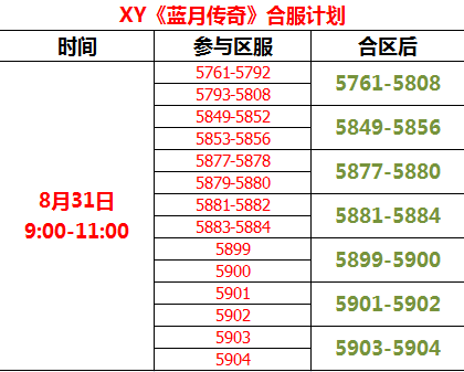 为了活跃游戏气氛,满足玩家需求,亲爱的玩家让广大玩家可以延续更激烈的战斗,XY《蓝月传奇》将于2021年8月31日对以下区服进行合服操作,合服期间玩家不能登录游戏,请各位玩家知晓并相互转告,感谢大家的支持!服务器开放时间会根据维护操作完成时间提前或者延迟开启,不便之处敬请体谅.