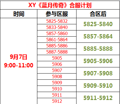 XY《蓝月传奇》9月7日合区公告