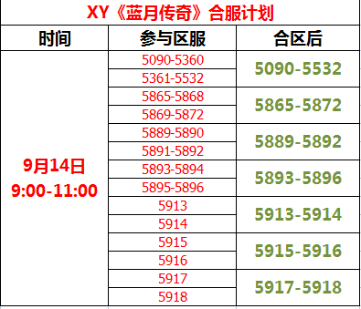 XY《蓝月传奇》9月14日合区公告