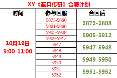 为了活跃游戏气氛,满足玩家需求,亲爱的玩家让广大玩家可以延续更激烈的战斗,XY《蓝月传奇》将于2021年10月19日对以下区服进行合服操作,合服期间玩家不能登录游戏,请各位玩家知晓并相互转告,感谢大家的支持!服务器开放时间会根据维护操作完成时间提前或者延迟开启,不便之处敬请体谅.