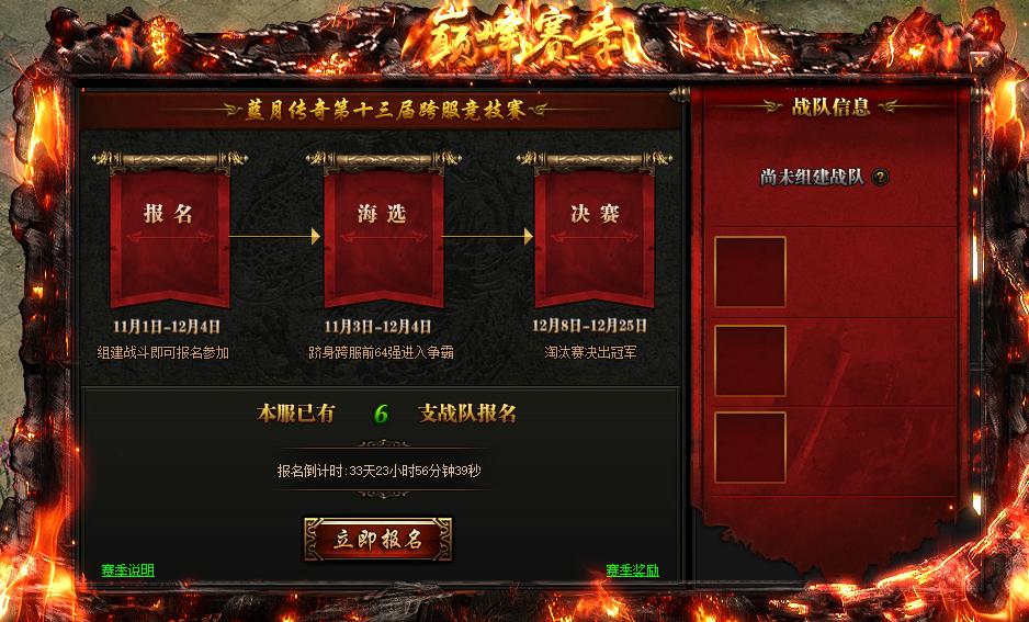 报名规则: 1.玩家达到7转,需组建或加入一支三人战队,由队长进行报名。