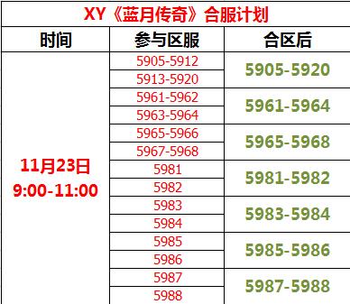 XY《蓝月传奇》11月23日合区公告