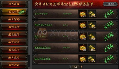 完成掉各种成就任务,成就点数达到一定数量之后就能够兑换勋章,装备之后更能给角色带来大量的属性加成。